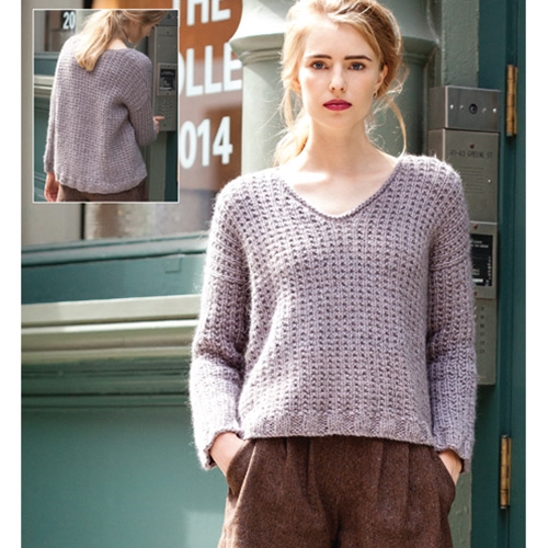 Standard-fitting pullover with V-neck in broken rib pattern stitch.