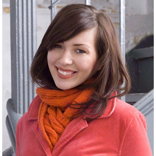 MATERIALS • Stitch Nation by Debbie Stoller Full o’ Sheep: 2 Balls 2260 Clementine. • Knitting Needles: 5.5mm [US 9]. • Cable needle • Crochet hook (for fringe) • Yarn needle