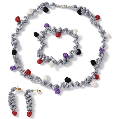 1 cone each in #1 White, # 2 Silver, #10 Red, #18 Purple, #20 Black of Karat by Skacel Collection Inc., 1oz/50g cone, each approx 143yd/131m (rayon/polyester)