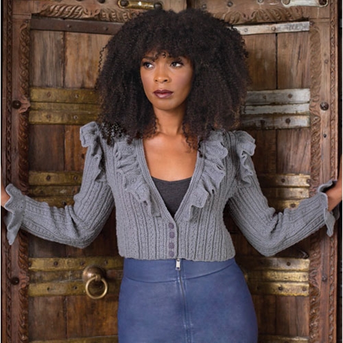 31 sts and 34 rows = 4″/10cm over rib pattern chart using size 7 (4.5mm) needles.