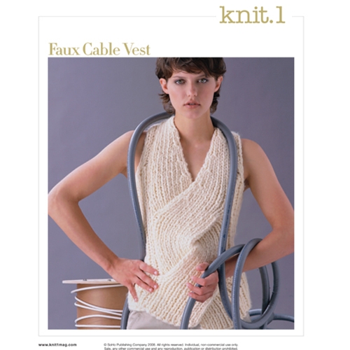 The front twist of this top is made from two scarves entwined together. The back and sides are knit in one piece in a K1, P1 rib.