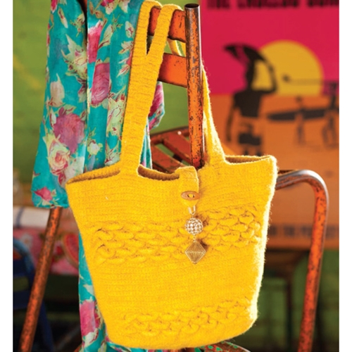 Tote worked in bands of crocodile stitch and single crochet, then felted.