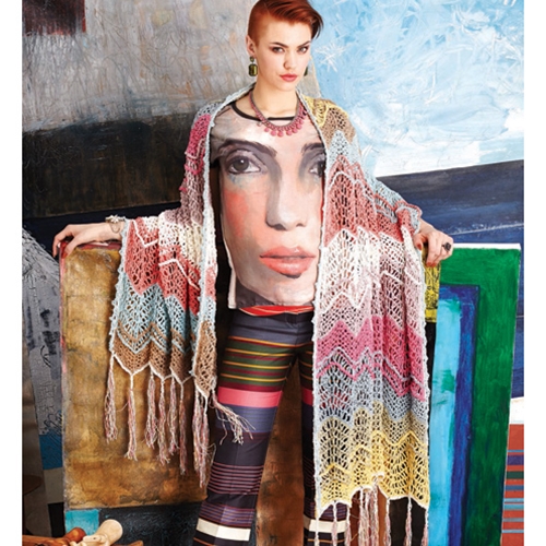 • 3 1¾oz/50g hanks (each approx 103yd/95m) of Berroco Lago (viscose/linen) each in #8415 sandcastle (brown A), #8476 seabreeze (lt blue B), #8478 papaya (coral C), #8401 whitecap (white D), #8420 pale hibiscus (lavender E), #8473 rum punch (bright pink F), #8410 steelpan (gray G), #8412 raffia (taupe H), #8430 pineapple (yellow I)