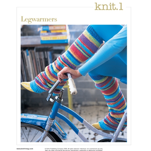 Knit on circular needles, the irregular stripe pattern of these cotton and Lycra legwarmers features seven different vivid shades.