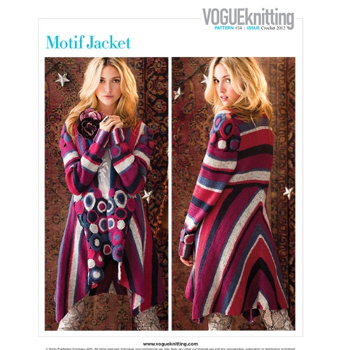 Jacket worked in stripes of double crochet with circle motifs to form the shoulders and front of the lower body.