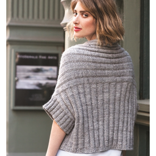 Loose-fitting cardigan worked in three pieces in an all-over rib pattern.