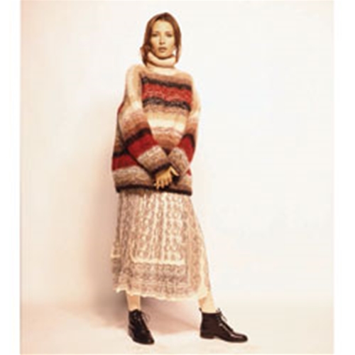 13 sts and 16 rows = 4″/10 over rev St st with 1 strand each of 7 Settembre and Mohair Kiss held tog using size 10 (6mm) needles.